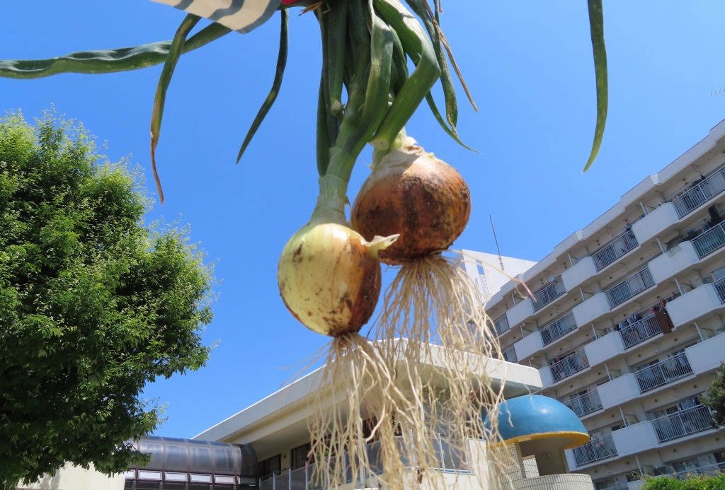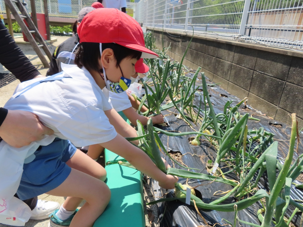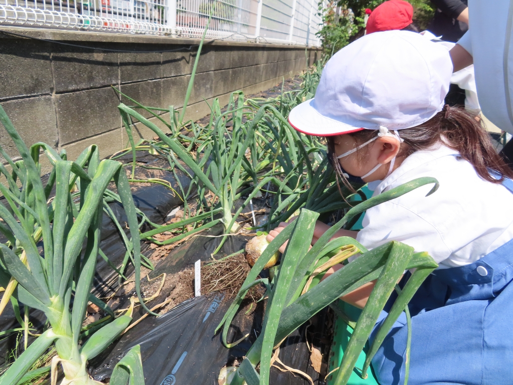 今日は年長組が年中の時に植えた玉ねぎを収穫しました!
