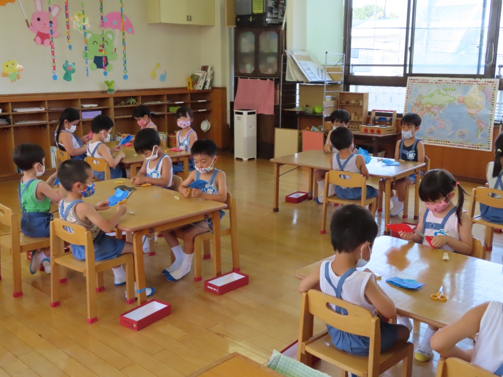 年長組さん、七夕製作を取り組みました!集中して真剣に作成していました!