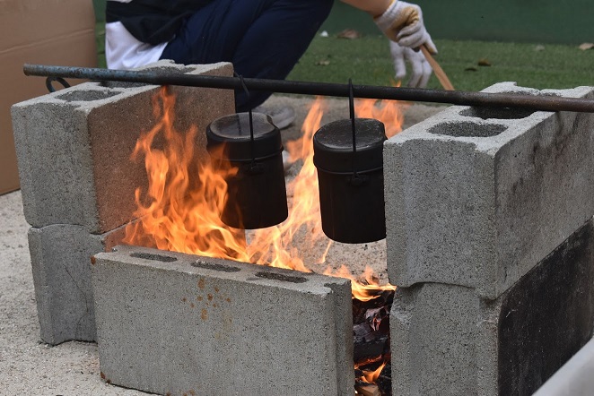 みんなで飯盒炊爨と釜でつくるカレーライスを見ました!