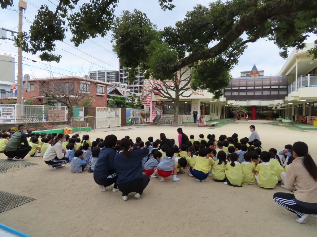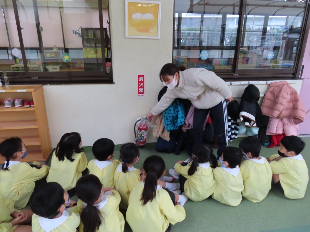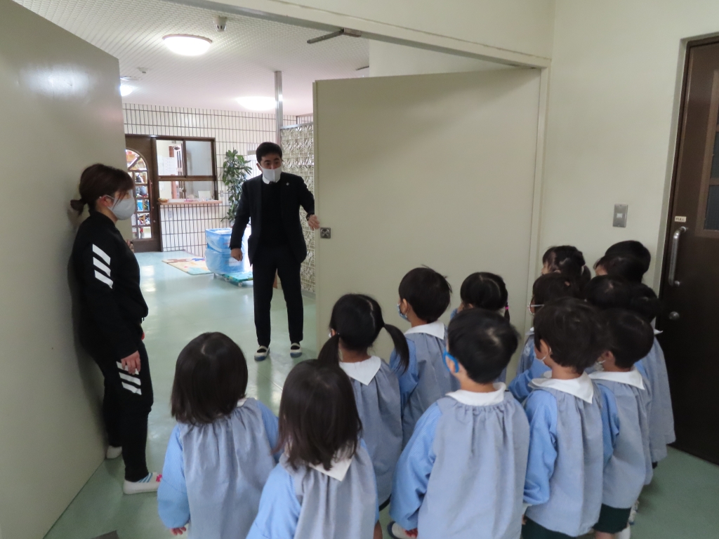 今日は幼稚園で地震火災避難訓練がありました!