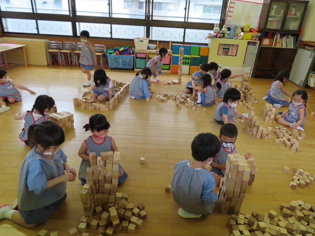 お友達と協力して積み木をしています!