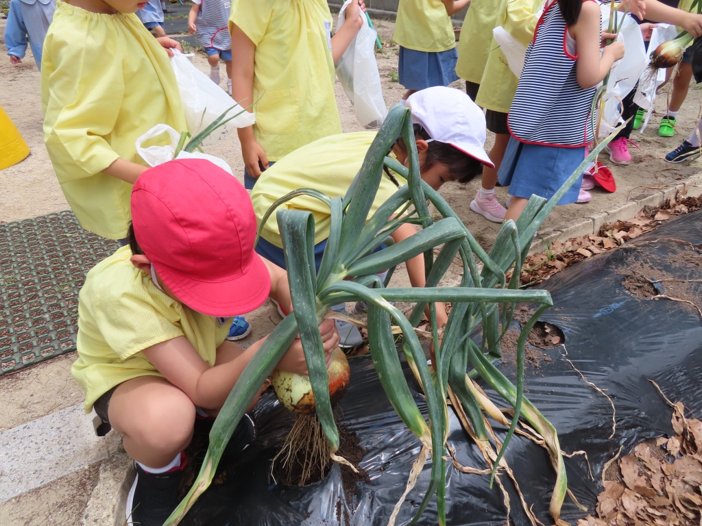 年長組が年中の時に植えた玉ねぎを収穫しました!
