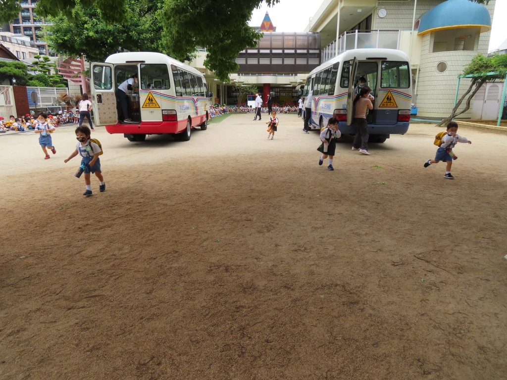 スクールバス避難訓練はお約束事を守り素早く逃げることができました!