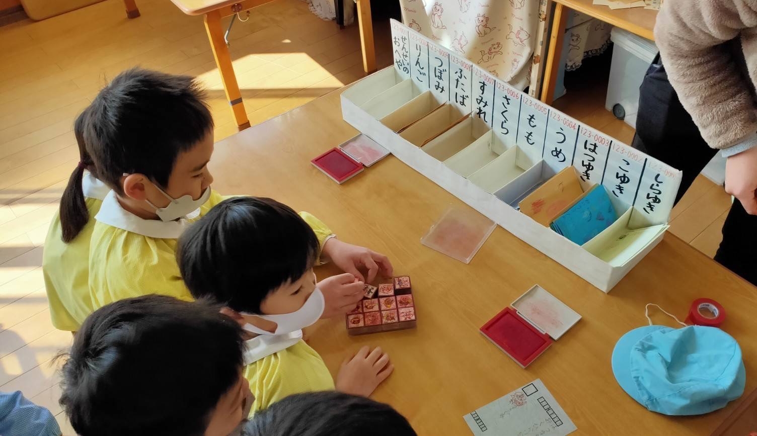年長組のお兄さんお姉さんがみんなのハガキを各ポストに配達してくれています♪