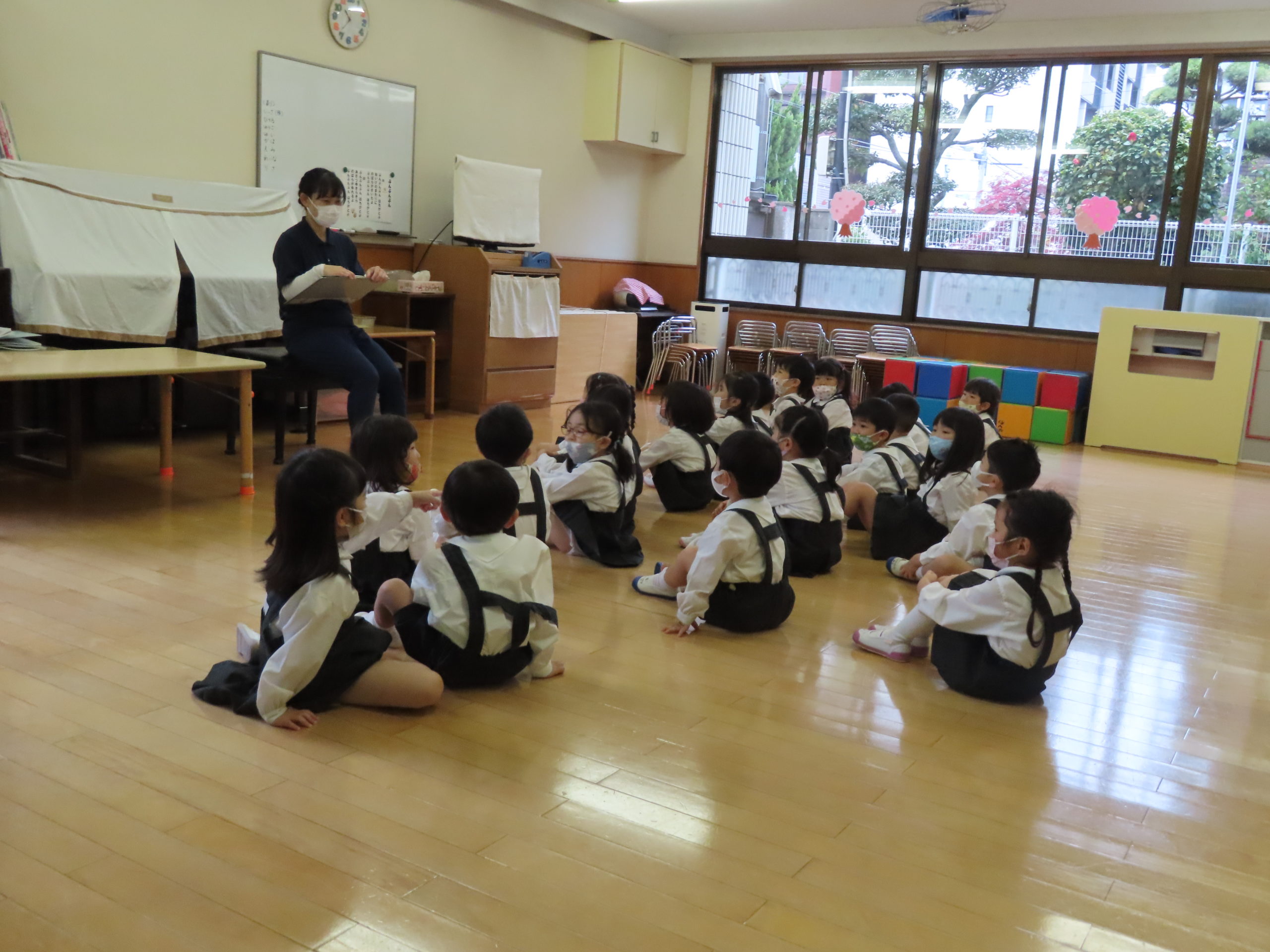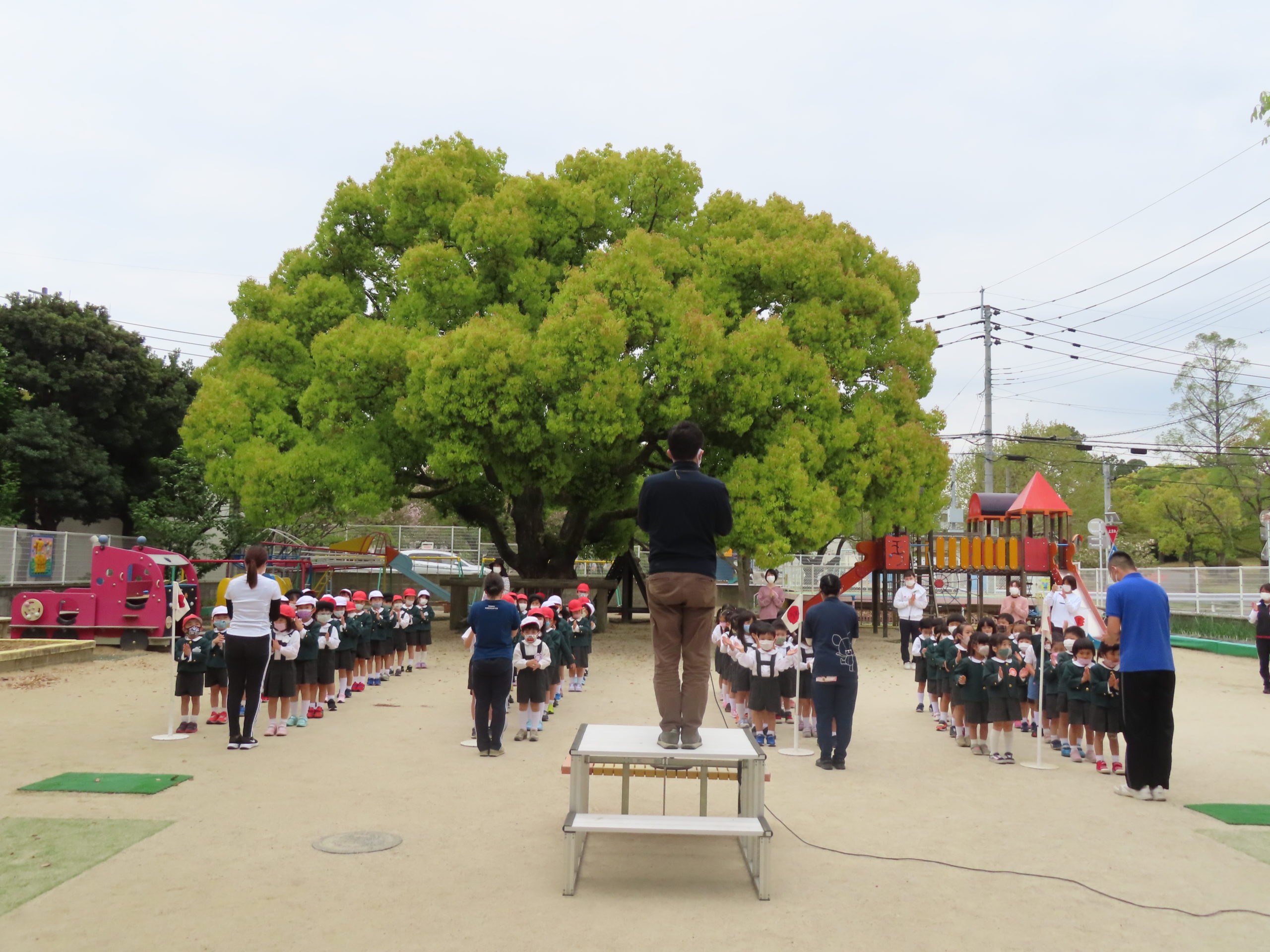 3月は年少、年中組だった子どもたちも今日から新しい年中、年長組のお兄さん・お姉さんです!新入園のお友達に色々教えてくださいね!