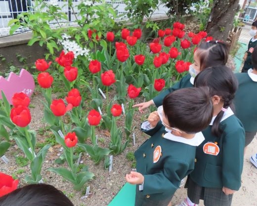 綺麗に咲いてるチューリップを見て大喜びでした✨