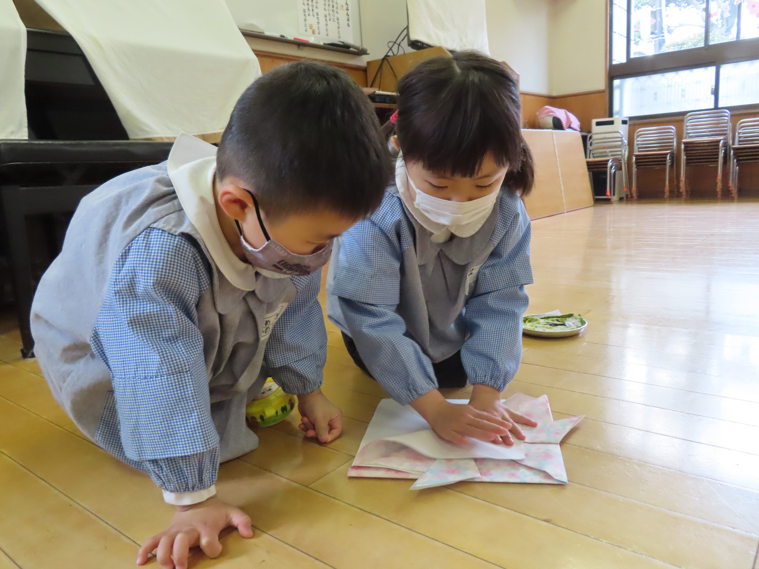 年長組が年少・年中の部屋に行きかぶとを折りました!