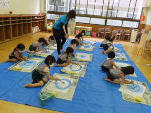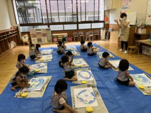 洗濯をイメージし、Tシャツやパンツに模様を描き貼り付けました!🩳