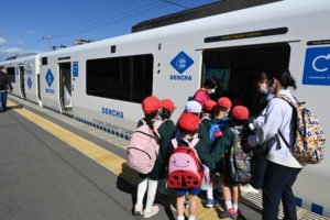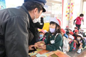 帰りは園長先生が駅長さんになり、切符を買って電車に乗りました!