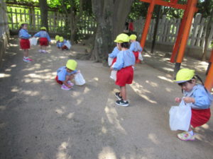りんご組がお隣の山王公園に行き、どんぐりや松ぼっくりを拾いました!