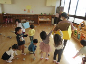 新聞紙をビリビリ 破き、思いっきり遊びました!