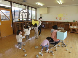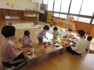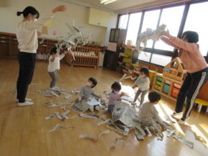 新聞紙遊び・ボタン遊び(くすのきクラブ)