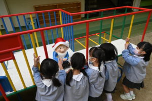 挨拶をしているお友だちや頭を撫でてるお友だちもいます☺