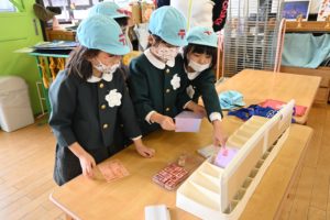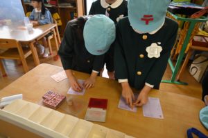 そして年長組が集荷し、消印を押し仕分けをして配達をします!