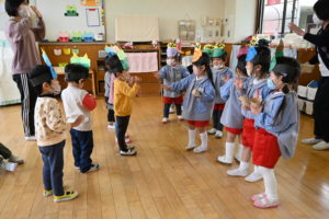くすのきクラブと年少々のりんご組も豆まきをしました!