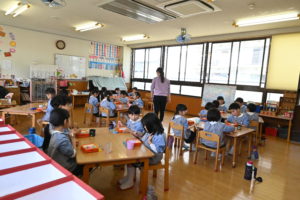 新しいクラスになり、今日は始めての給食でした!久しぶりに仕切りも無くなり、