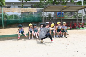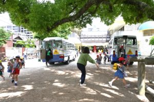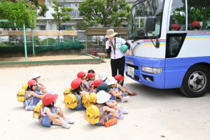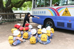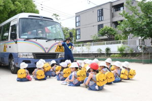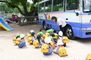遠足で乗る場合がありますので全園児で訓練を行います。