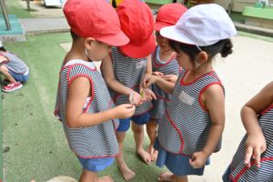 園庭で見つけた蛹、