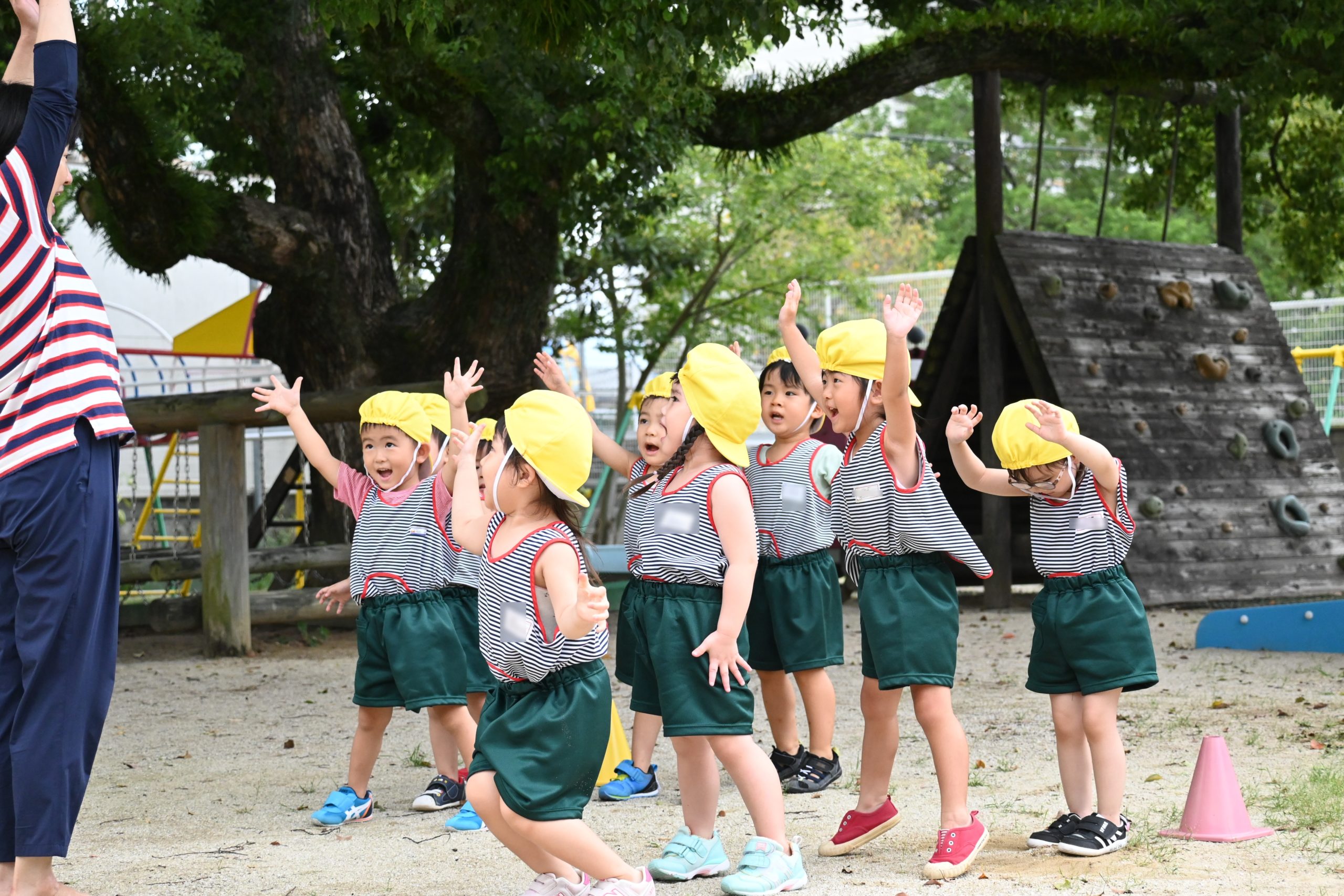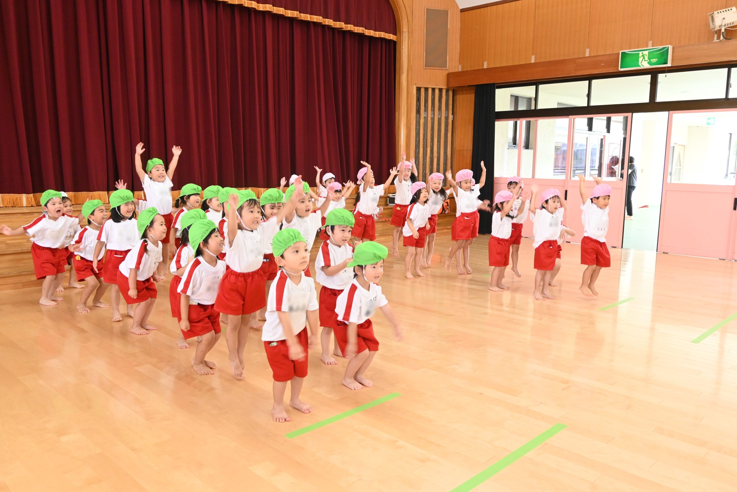 園庭やホール、お隣の山王公園で運動会の練習をしています!