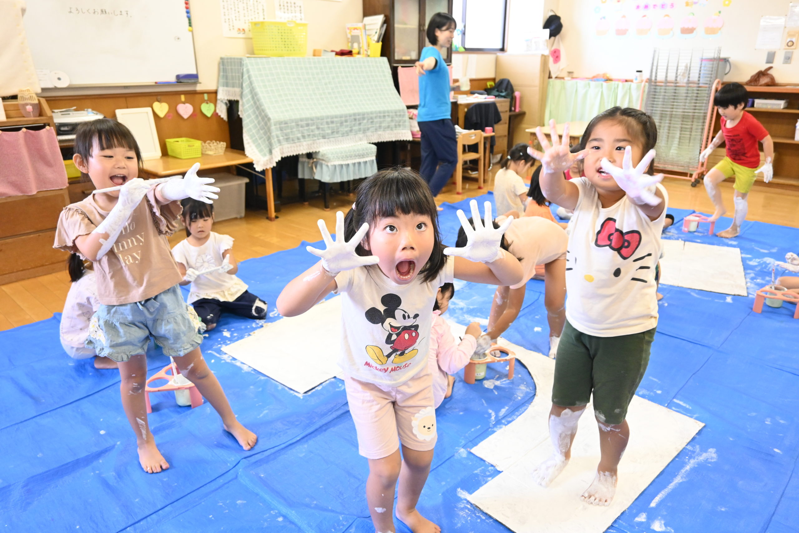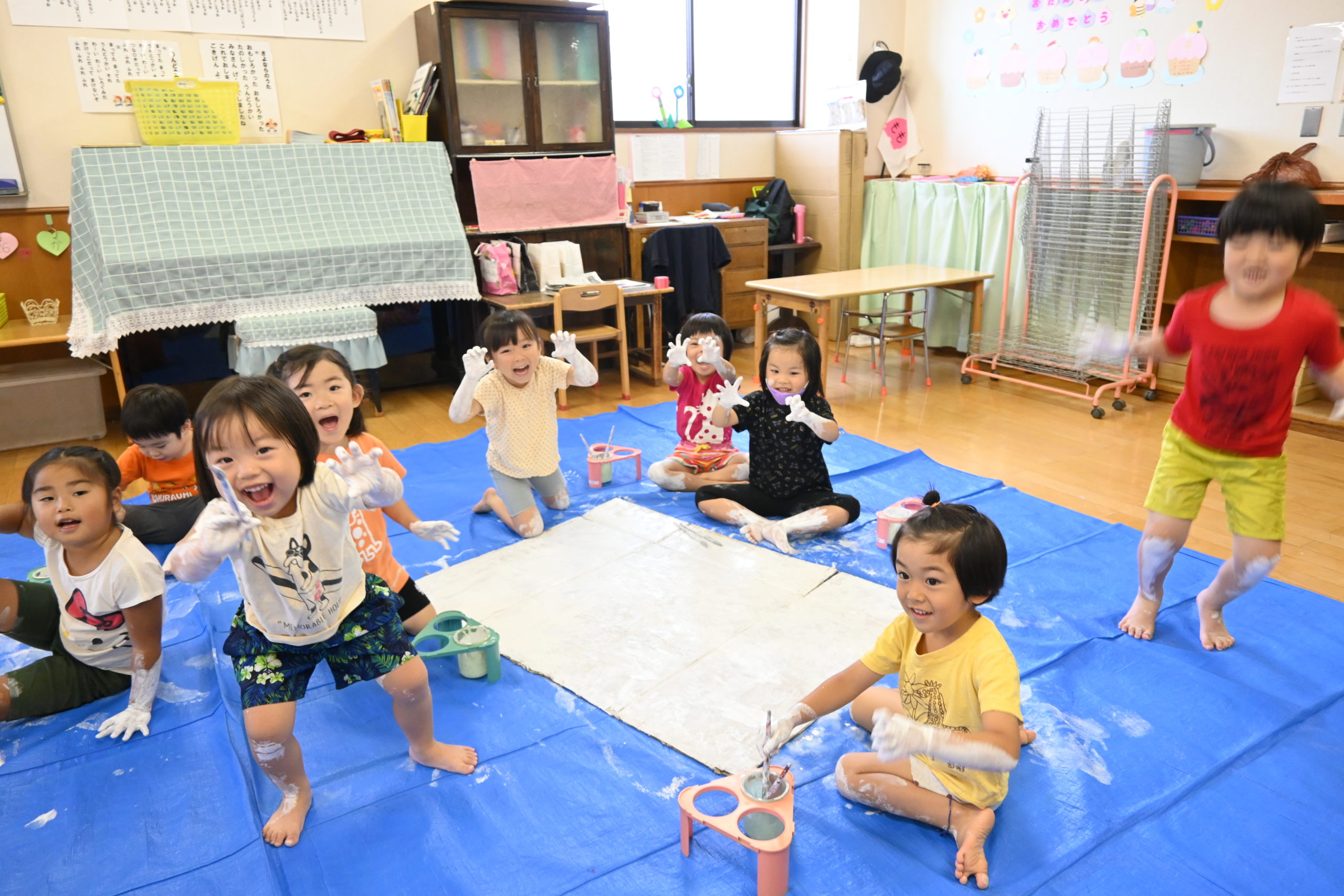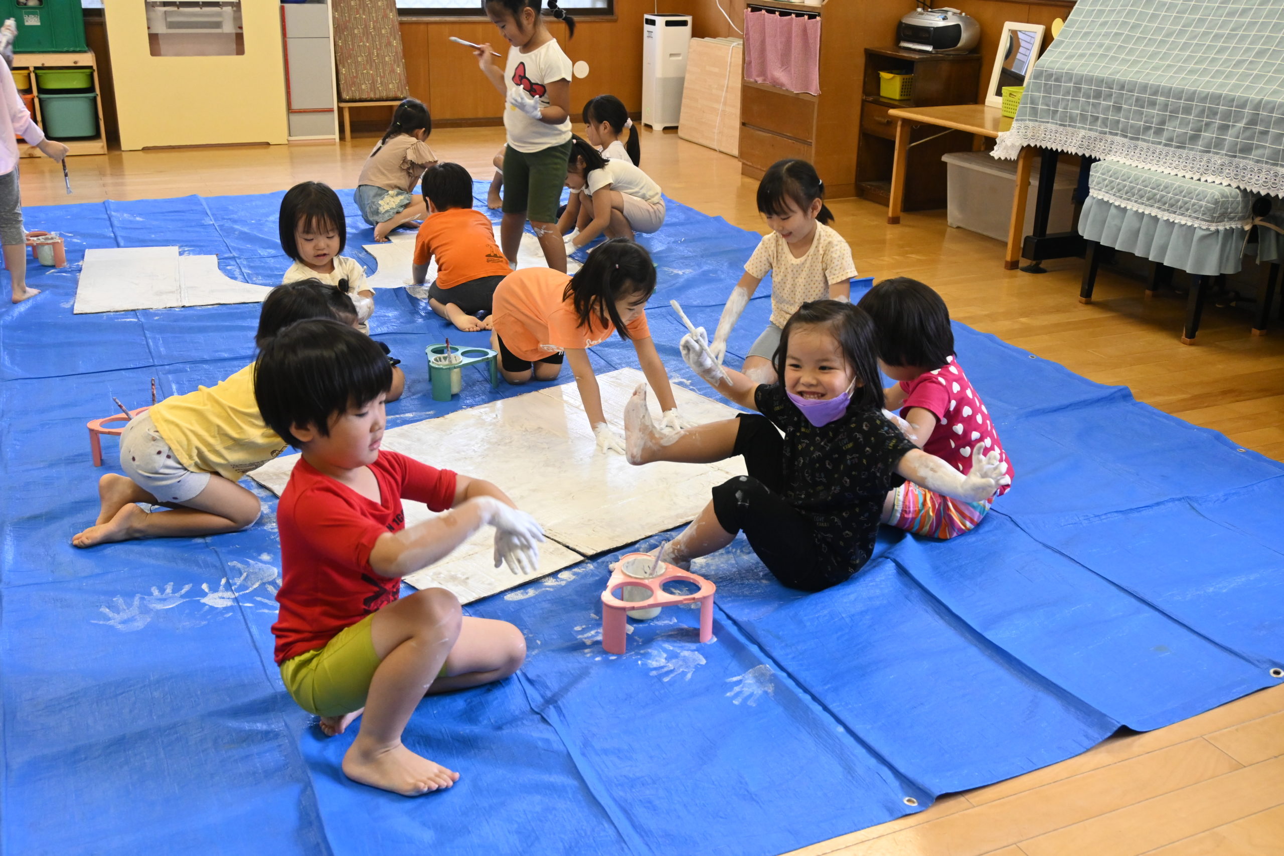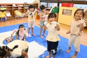もも組が手や足を使い絵具を塗りました!