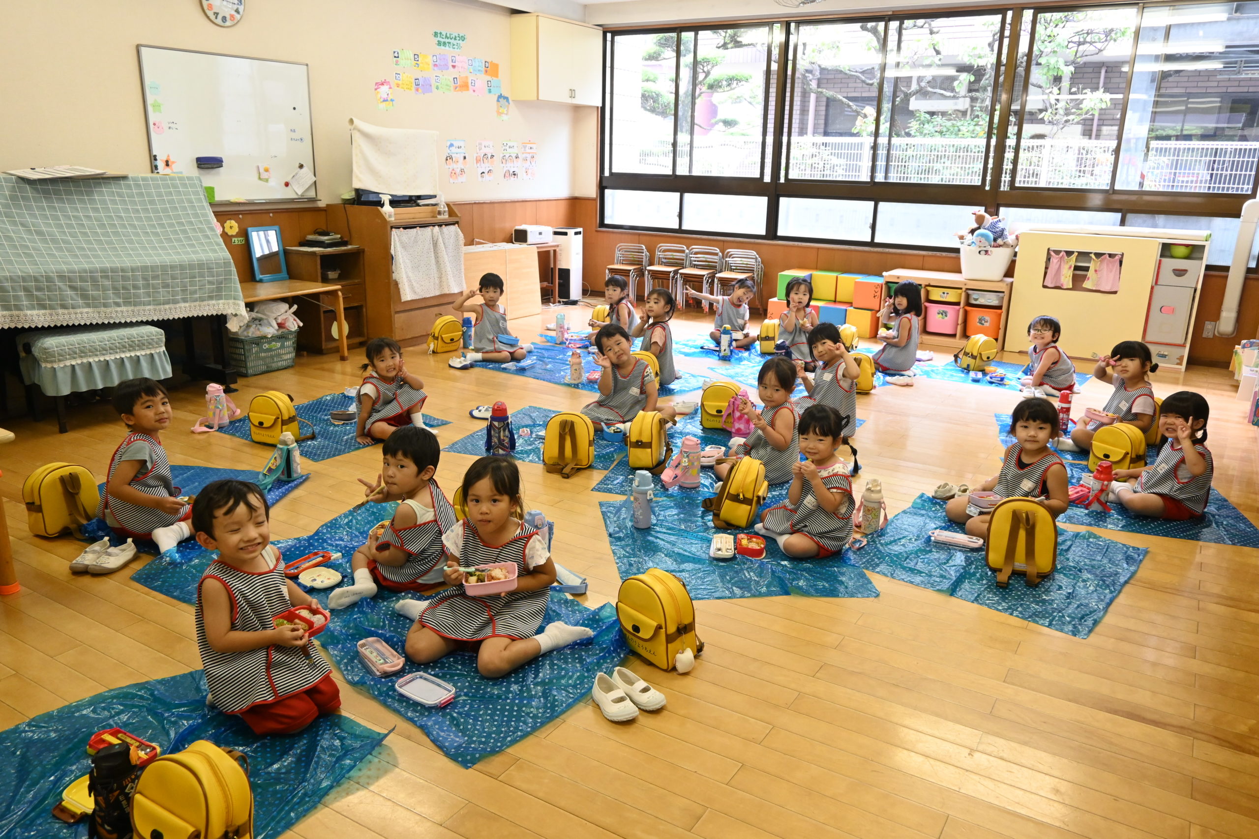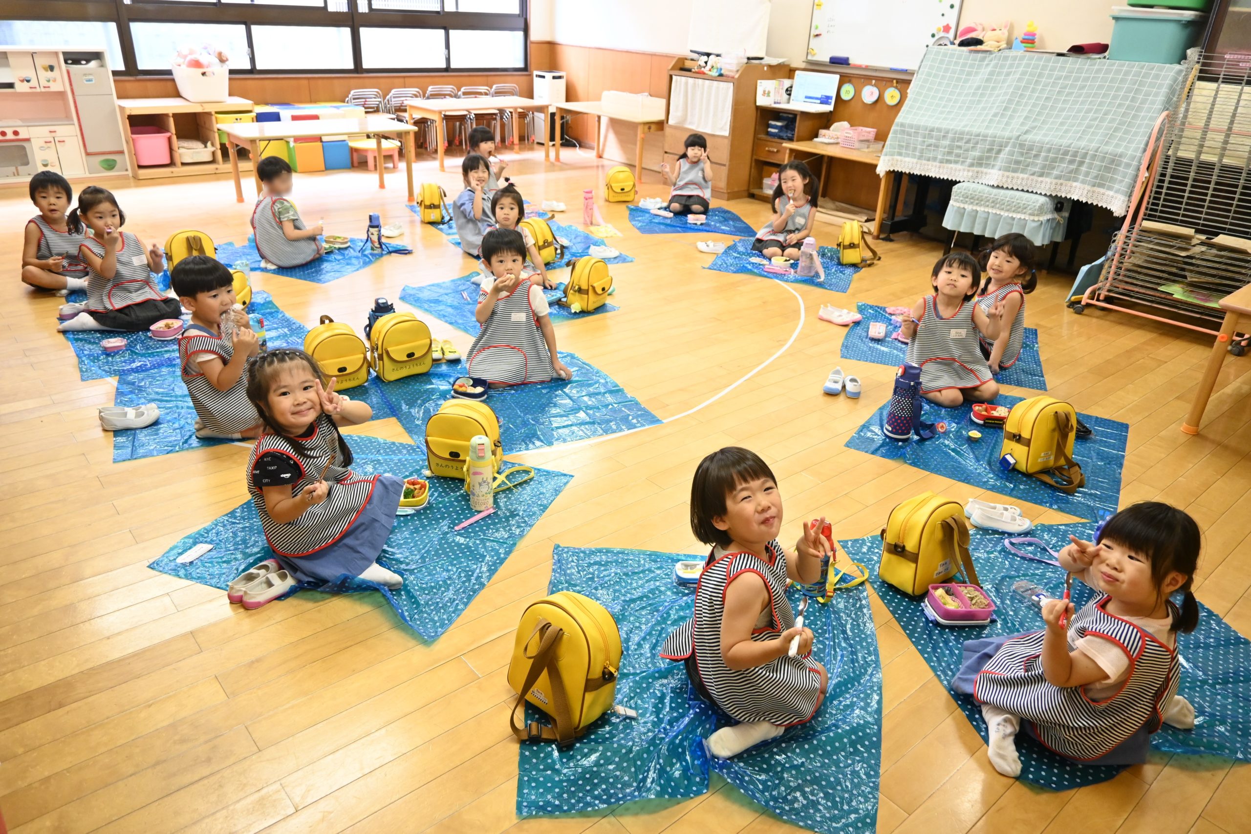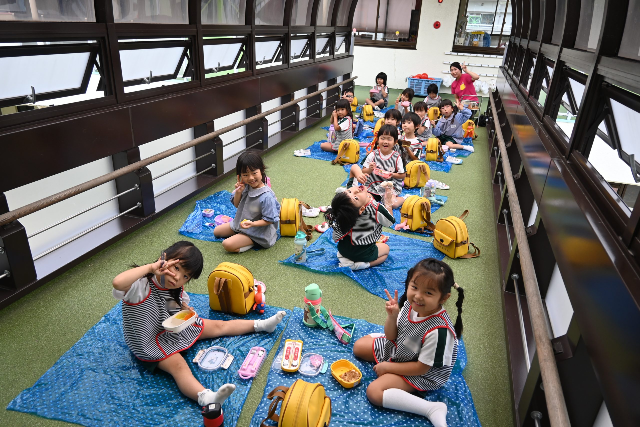 今日はクラス等でブルーシートを広げ、お弁当をいただきました🍱