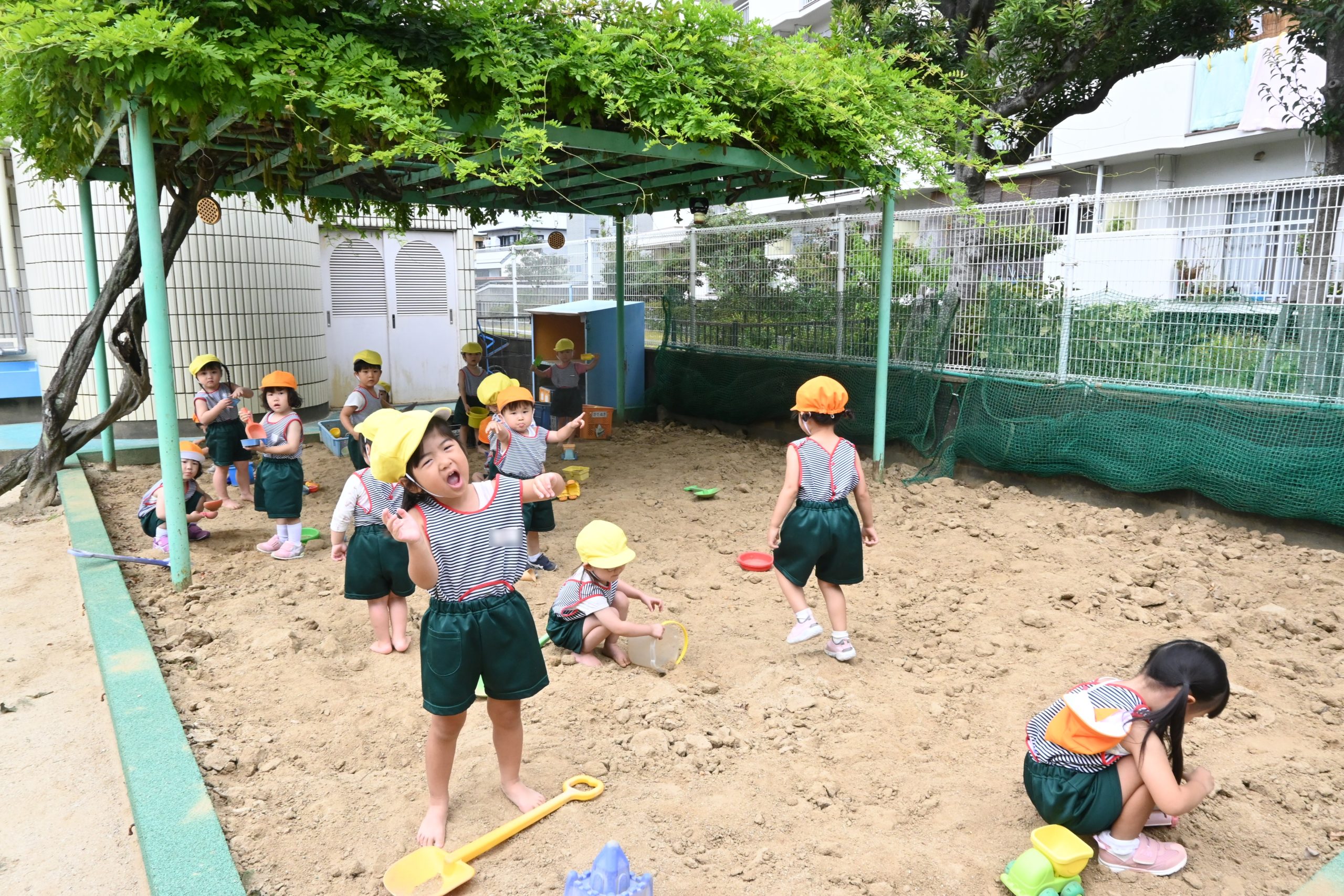 年少々のりんご組とみかん組が一緒に砂場遊びを楽しみました☺