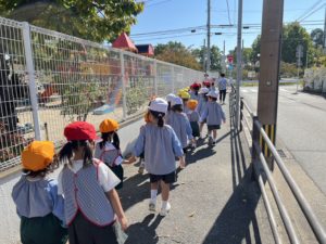 年中組のお兄さんお姉さんが年少々組のお友だちの手をひき、仲良く向かいました!