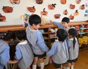 年少組が年長組のお友だちが制作した水族館に行きました!