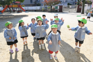 ぴょんぴょん飛んで見せてくれました☺幼稚園のこどもたちはお外遊びの際、園庭に落ちてる葉っぱは木の葉、貝殻など拾って楽しんでます♪