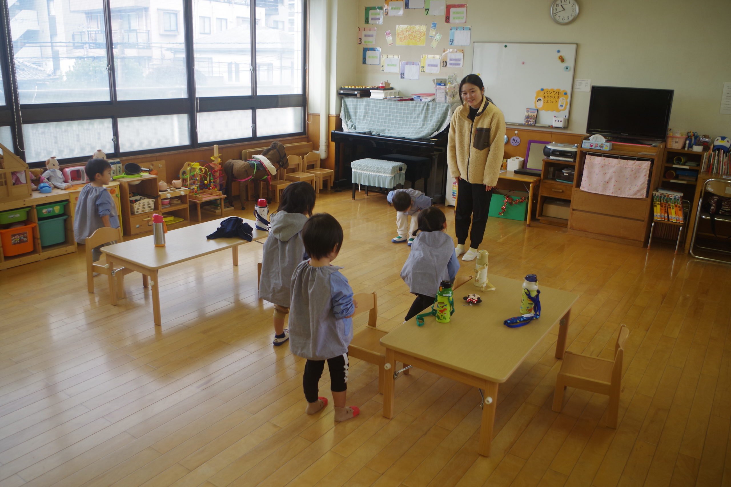 久しぶりの登園でみんな少しお疲れ気味でしたが「おにのパンツ」を踊って、最後は元気に「さようなら」をすることができました!