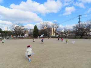 お隣の山王公園で凧あげを行いました!