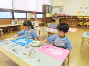 年少々のりんご組が初めての造形遊びを行いました!