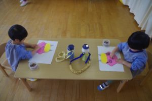 今週の土曜日は[節分]ということで、鬼のお面をつくって豆まきをしました!