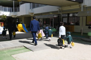 ドキドキワクワクしながらお家の方と幼稚園に登園してきました☺