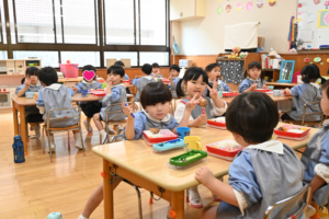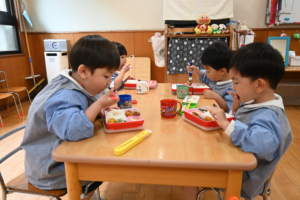 皆で食べる楽しさを味わいながら、何でも食べて成長できるよう見守っていきます!