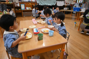 おいしいとモクモク食べる子、なかなか食事が進まない子、おかわりをする子
