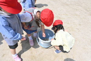 そしてこれから裸足で外遊びもするので、痛くないよう園庭の石を拾いました!
