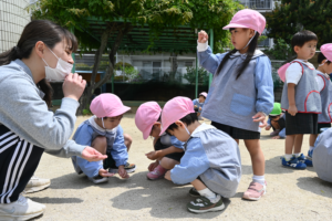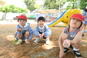 本日は朝礼と園庭の石拾いを行いました!