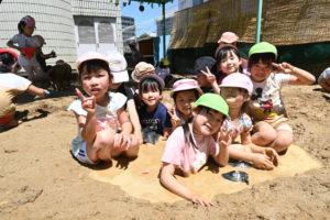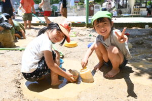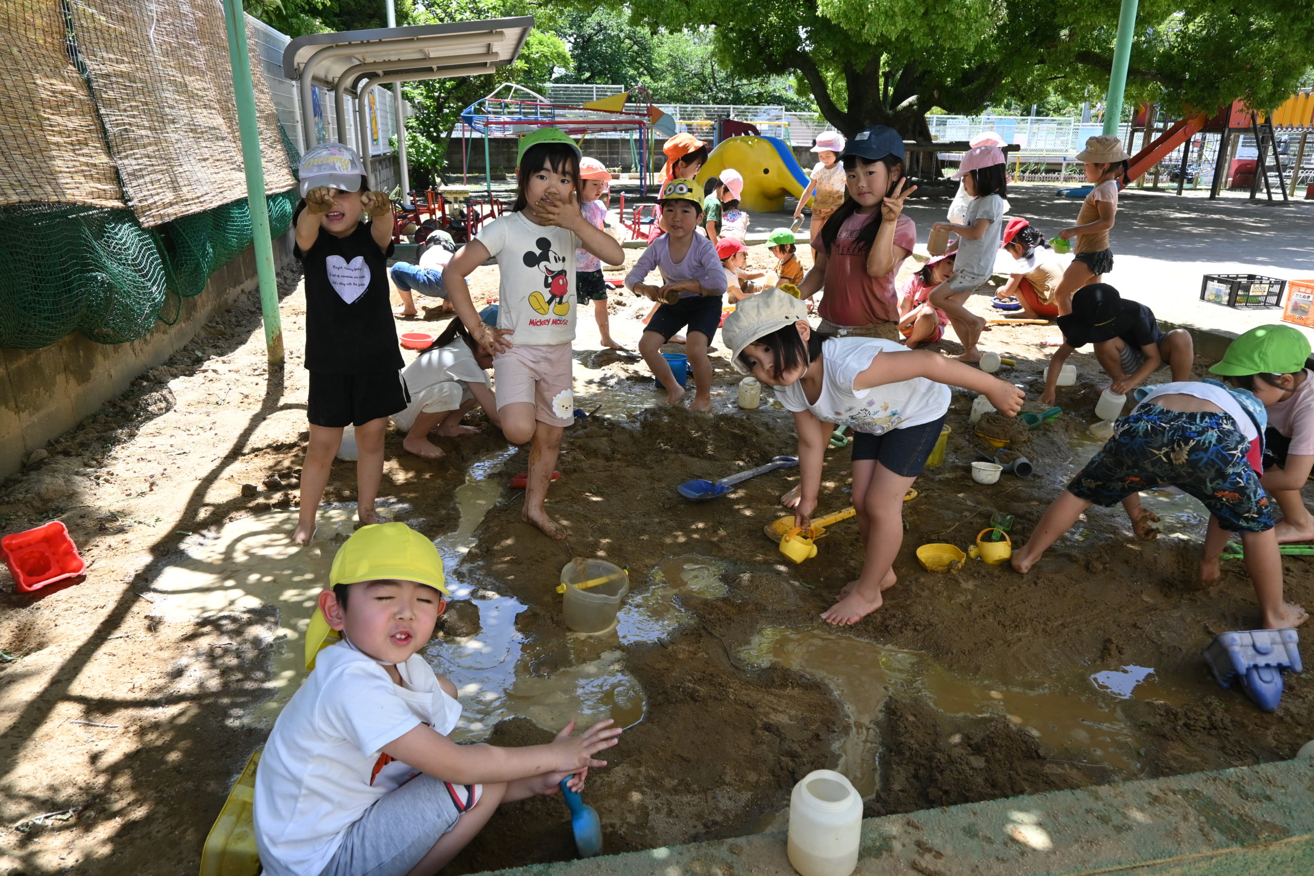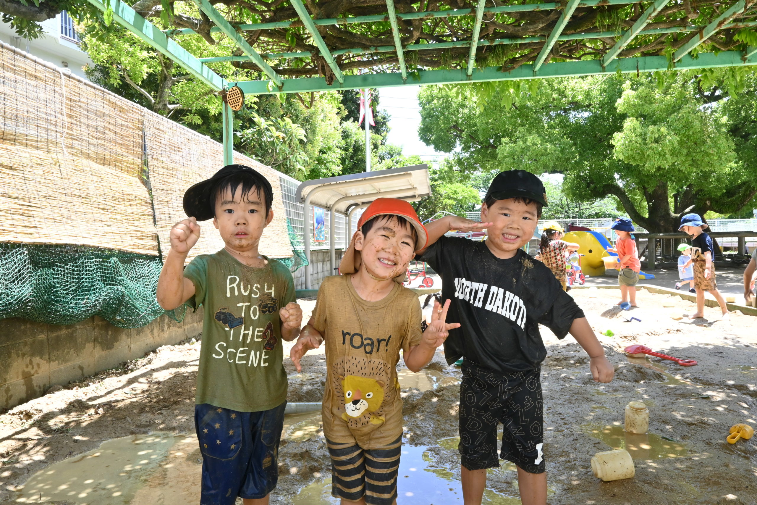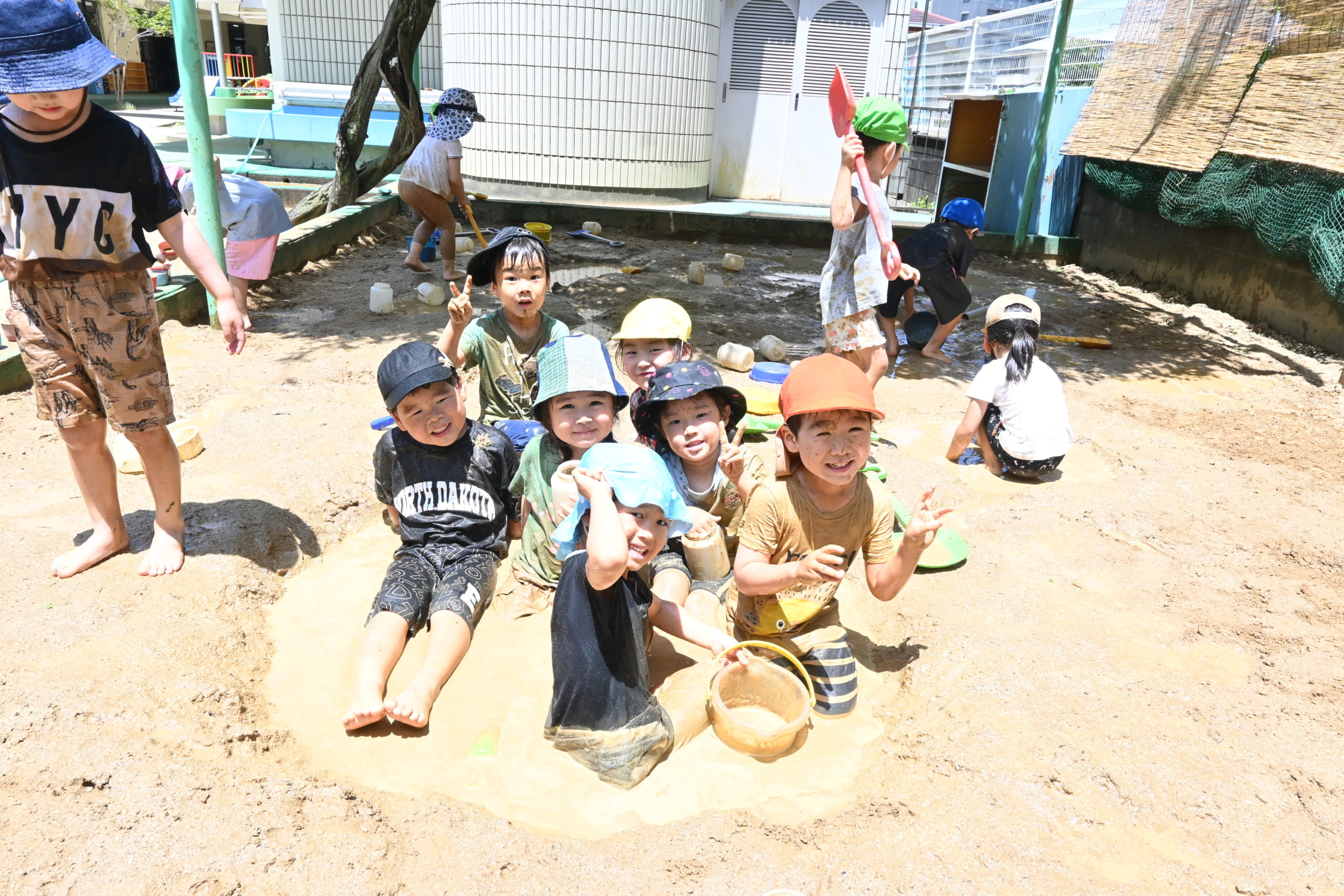 泥のお団子をつくったり、川や温泉を作ったり、山をつくったりとそれぞれ思う存分楽しみました🎶今日はどろんこ遊び、初日ですが皆さんダイナミックです✨