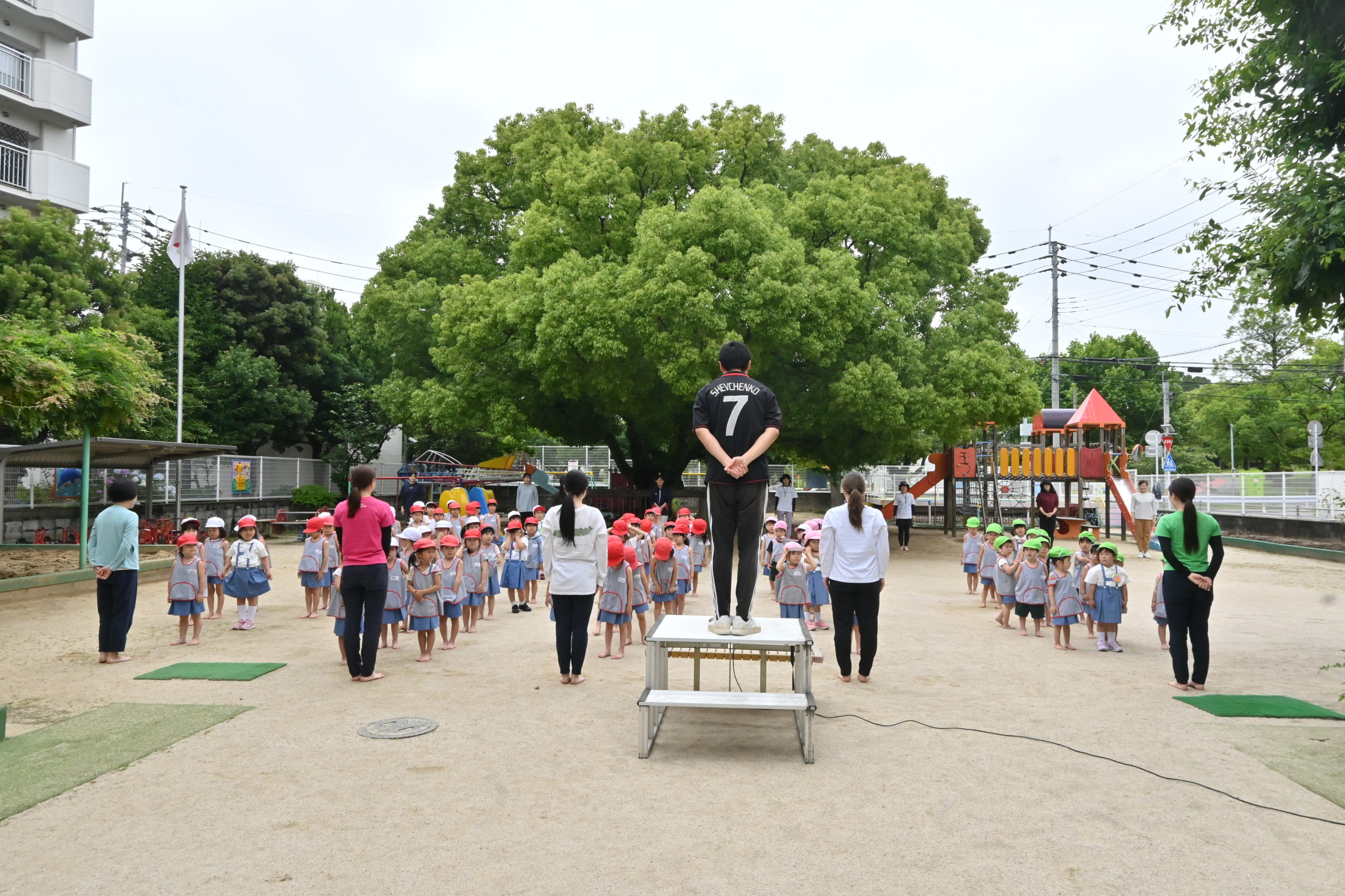 朝礼の時は旗もあげます🏳