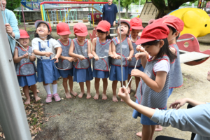 今年度初めてです!小さい組のお友だちは先生のお手本を見ながら頑張ってました✨