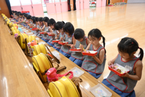 本日のお弁当給食の献立は、フライドチキンとマカロニソテーとハヤシライスです♪