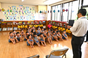 訓練後に年長組の子ども達は、警察の方から安全についてのお話がありました!