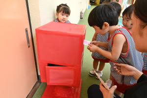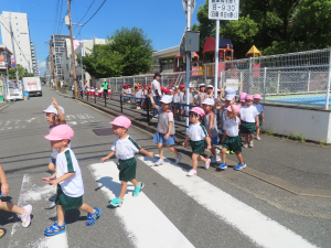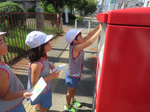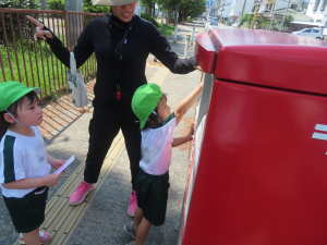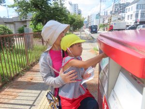 ポストまでお兄さん・お姉さんが手を引いて連れて行ってくれましたね☺(写真は横断歩道なので手をはなしてます)