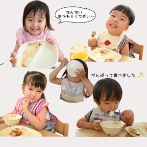 みかん組、初めての給食です!お行儀よく食べることができました👏