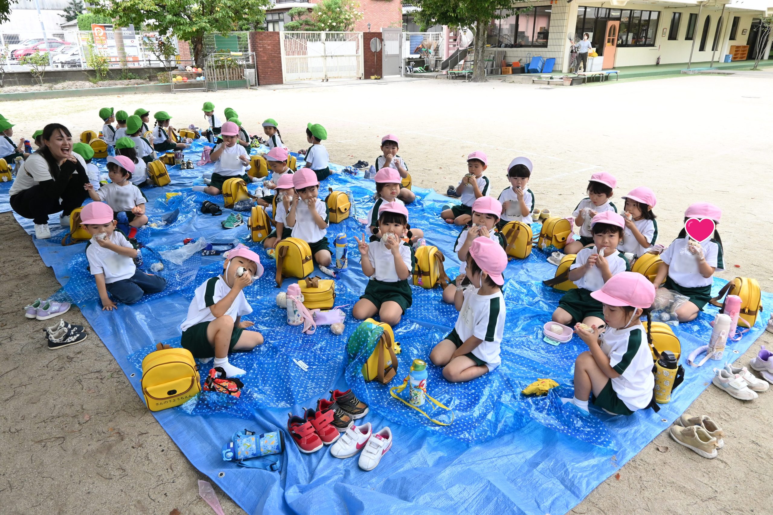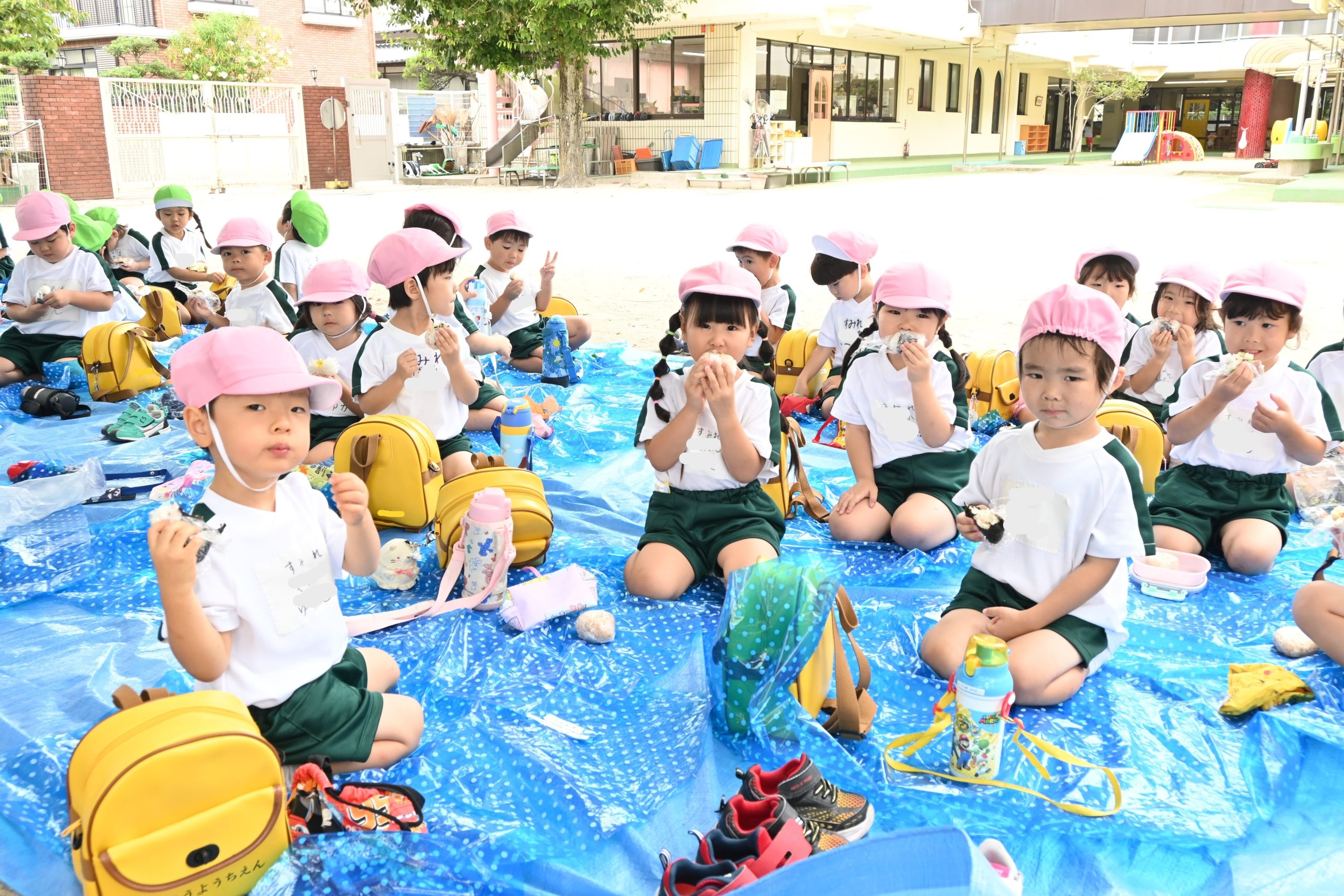 お昼は幼稚園に帰ってきてくすのきの下で食べました🍙