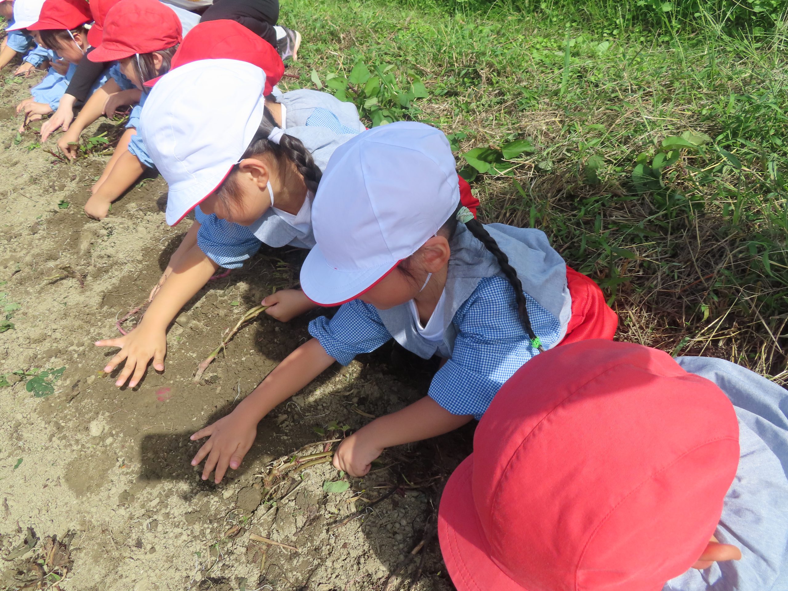 土に埋まっているお芋を見つけると、無我夢中に堀りました!