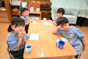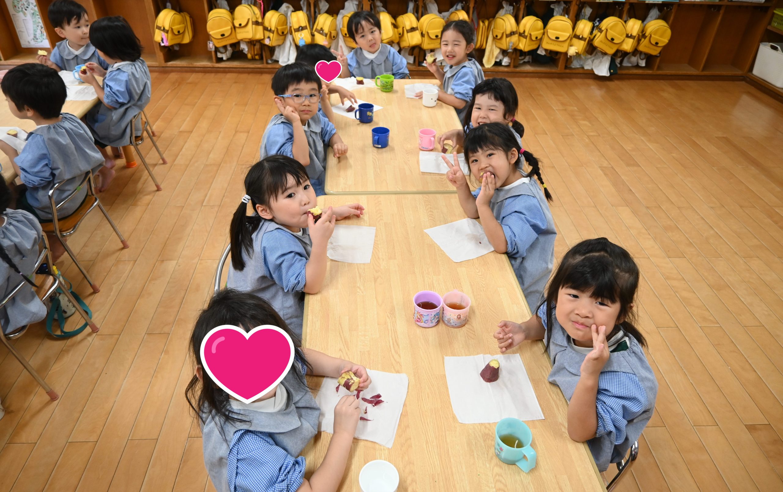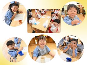「おいしいー!」「あまーい!」と言い食べてました✨ふかしてお友だちと食べたお芋、おいしかったですね🎵