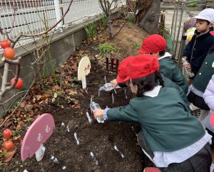 年中組・年少組・年少々組がチューリップの球根を植えました🌷