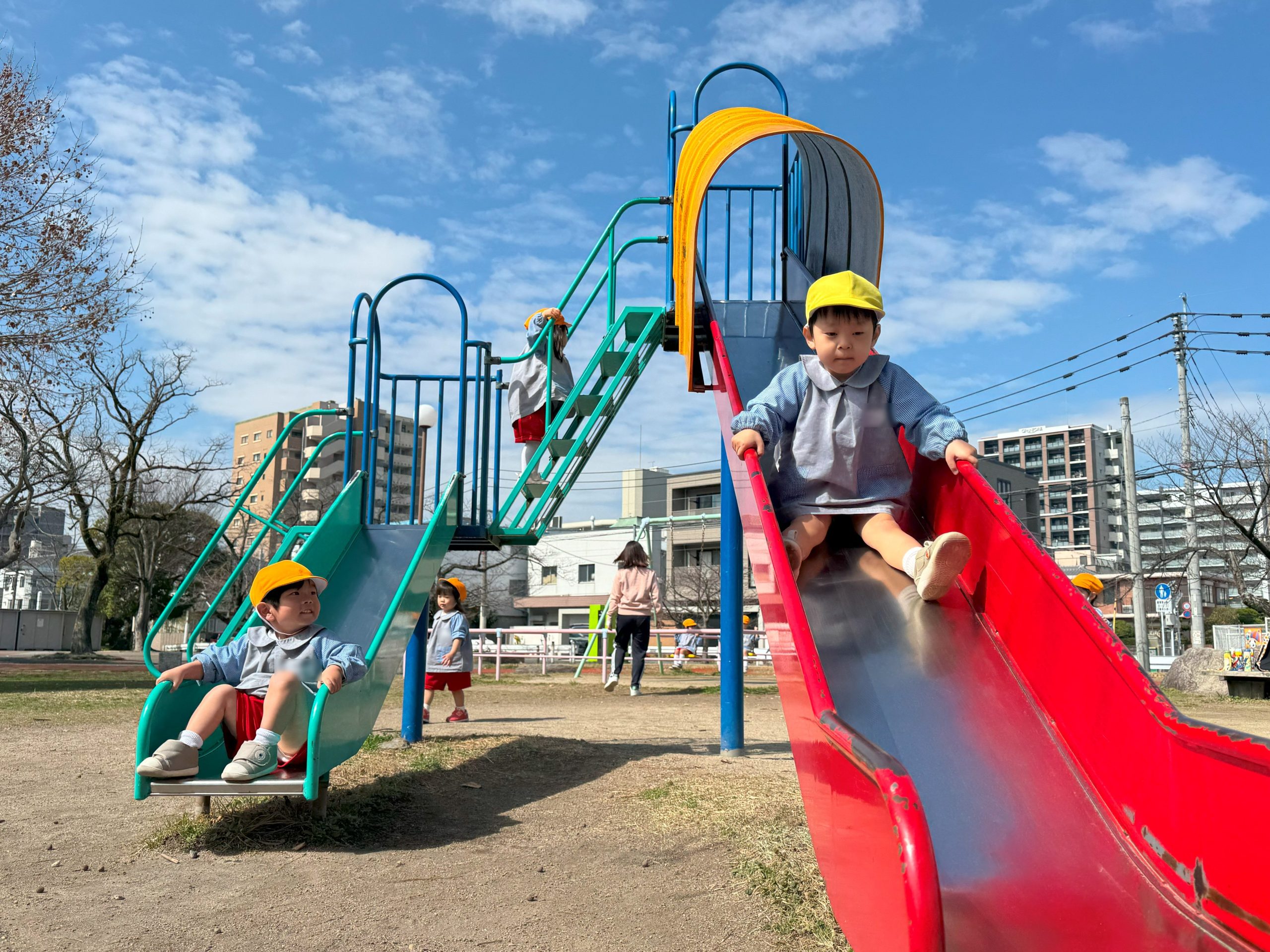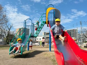 お隣の山王公園に行き、クラスのお友だち先生とたくさん遊びました!